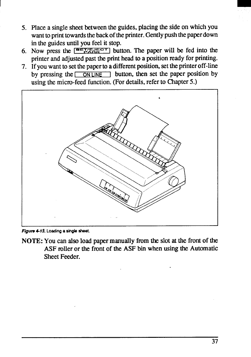 Ifyouwanttosetthepapertoadifferentpositiomsettheprinteroff-line