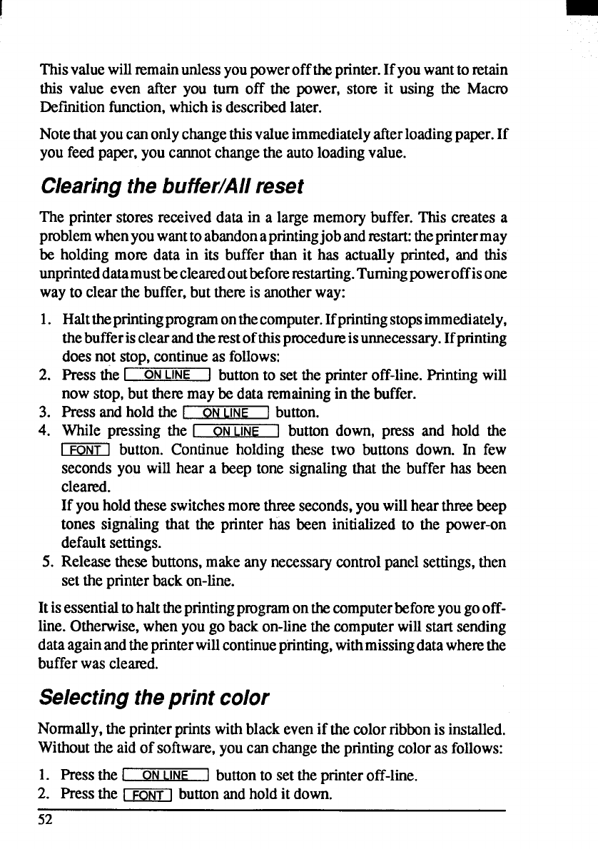 buttonto set the printeroff-line.Printingwill