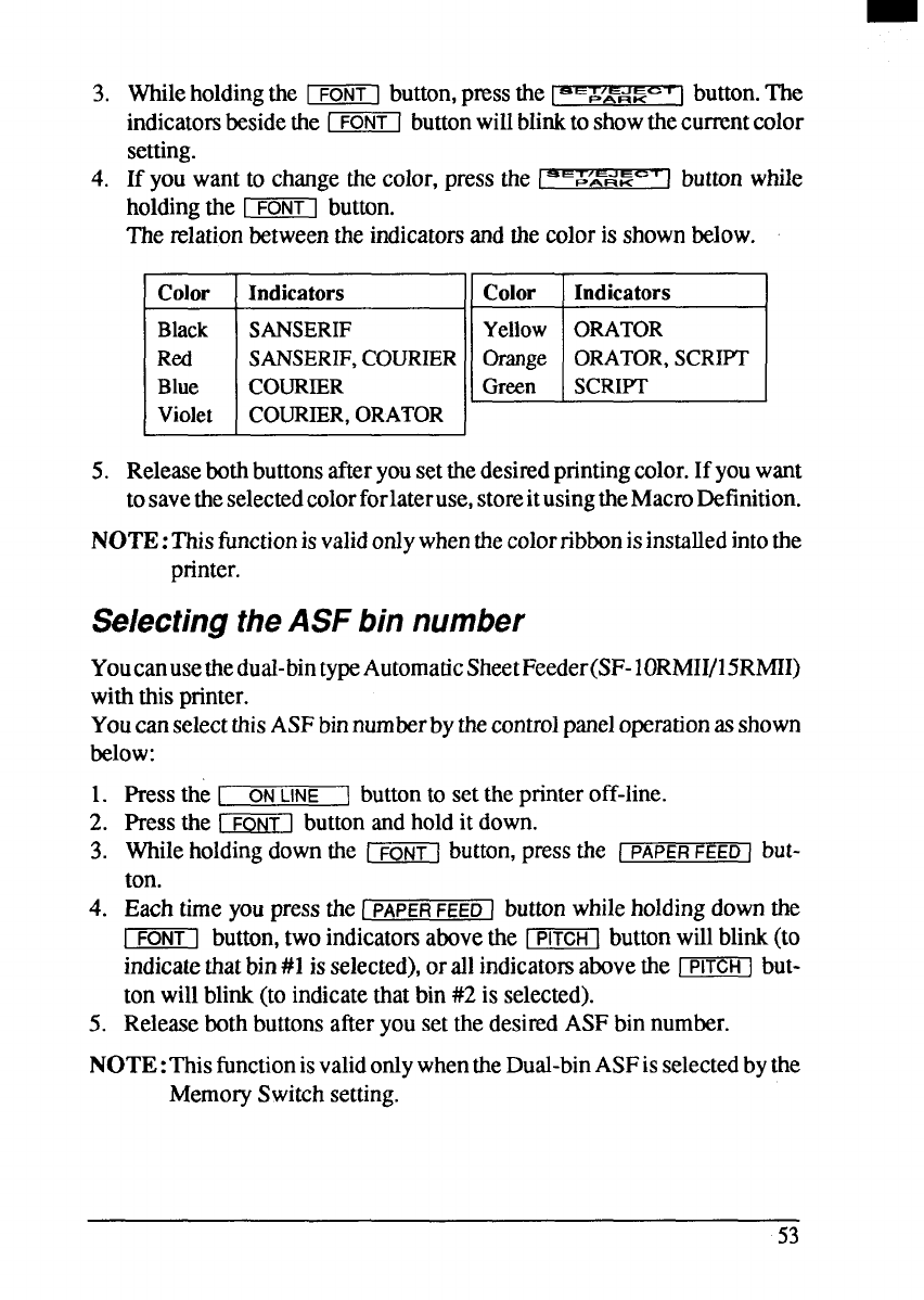 NOTE: Thisfimctionisvalidonlywhenthecolorribbonisinstalledintothe