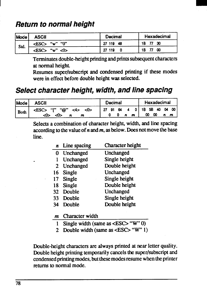 Double-heightcharactersare alwaysprintedat nearletterquality.