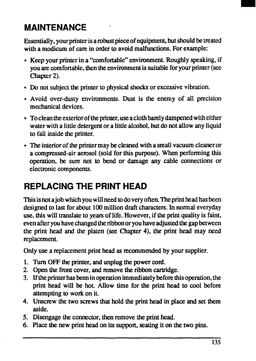 the print head and the platen (see Chapter4), the print head may need