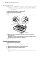 Installing the automatic sheet feeder 3 ❏ arms enter into grooves in the printer mechanism that was exposed when you removed the two small pieces (see “Preparing the printer” in the previous section). The top of the automatic sheet feeder angled towards the front of the printer when you do this. Swing the back of the automatic sheet feeder down, and press down gently until it settles securely in place. ❏ Close the mute cover.