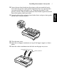 Loading paper 5 ❏ Carefully place the paper into the paper tray against the stationary paper Paper guide Retaining clip ❏ Close the paper tray cover. ❏ Make sure that the release lever is pushed back to the cut-sheet position. You are now ready to print with the auto sheet feeder. English English guide on the right side. Make sure that the left and right edges of the paper stack are under the retaining clips inside the tray.
