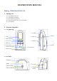 3. Start to use 3.1 a. b. c. d. e. f. 3.2 PU receiver instructions Disassemble the battery cover. Insert two AA rechargeable batteries (ensure the polarity of the batteries is right). Assembly the battery cover. Note: Use rechargeable battery or AC adaptor as power supply. Press the Power button for 3 seconds to power up, and the Power Indicator is on. When battery voltage is lower than 2.2V, the low battery voltage alarm (BB sounds) appear once. When battery voltage is lower than 2.