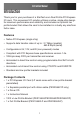 Instruction Manual Table of Contents Introduction ................................................................................... 1 Features.......................................................................................1 Package Contents........................................................................1 Hardware Guide.............................................................................. 2 Installation.................................................................................