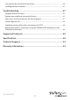 Technical Support StarTech.com’s lifetime technical support is an integral part of our commitment to provide industry-leading solutions. If you ever need help with your product, visit www.startech.com/support and access our comprehensive selection of online tools, documentation, and downloads. For the latest drivers/software, please visit www.startech.com/downloads Warranty Information This product is backed by a three year warranty. In addition, StarTech.