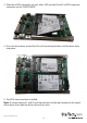 3. Slide the mSATA connector on your other SSD into the Drive #2 mSATA receprical connector on the 25SAT22MSAT. 4. Press the drive down toward the Drive #2 mounting bracket, until the drive clicks into place. 5. The SSDs have now been installed. Note: To remove drives #1 and #2, pull upward on two the tabs located on the top of either drive, then slide the drives out one at a time.