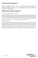 Technical Support StarTech.com’s lifetime technical support is an integral part of our commitment to provide industry-leading solutions. If you ever need help with your product, visit www.startech.com/support and access our comprehensive selection of online tools, documentation, and downloads. Warranty Information This product is backed by a lifetime warranty. In addition, StarTech.