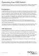 Operating Your KVM Switch To toggle between computers, you can use the hot-key commands, OSD (On-Screen Display) menu or by using the push buttons built into the 1UCABCONS series LCD Rack Console. Push Buttons A solid red indicator reflects the port selected. The indicator flashes red when in Auto or Manual Scan mode. You can press any of the corresponding push buttons to select the active computer. On the 16 port models, Port 1 and Port A share the same push button, as do Port 2 and Port B, etc.