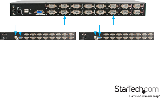 connected to 16 computers. The Slave KVMs must be connected to the 1~8 ports,
