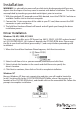 Technical Support StarTech.com’s lifetime technical support is an integral part of our commitment to provide industry-leading solutions. If you ever need help with your product, visit www.startech.com/support and access our comprehensive selection of online tools, documentation, and downloads. For the latest drivers/software, please visit www.startech.com/downloads Warranty Information This product is backed by a two year warranty. In addition, StarTech.