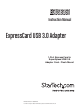 ECUSB3S1 Instruction Manual ExpressCard USB 3.0 Adapter 1-Port ExpressCard to SuperSpeed USB 3.0 Adapter Card - Flush Mount Manual Revision:11/30/2010 For the most up-to-date information, please visit www.startech.