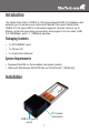 Table of Contents Introduction...................................................................... 1 Packaging Contents.....................................................................1 System Requirements..................................................................1 Installation........................................................................ 1 Hardware Installation....................................................................2 Driver Installation...................................