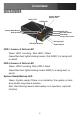 Instruction Manual SAT2520U2ER System Ready/ Backup LED HDD-1 LED HDD-0 LED Change Mode Button Backup Button eSATA Port Mini USB Switch RAID Mode Configuration Switch HDD Eject Buttons DC Input (5V) Power Switch HDD-1 Access & Failure LED Green: HDD-1 working. Red: HDD-1 failed. Green/Red twin lights blinking means that RAID(1) is being built, or rebuilt. HDD-0 Access & Failure LED Green: HDD-0 working. Red: HDD-0 failed.