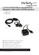 /2 Port FTDI USB to Serial RS232 Adapter Cable with COM Retention ICUSB2321F ICUSB2322F *ICUSB2322F *ICUSB2321F DE: Bedienungsanleitung - de.startech.com FR: Guide de l'utilisateur - fr.startech.com ES: Guía del usuario - es.startech.com IT: Guida per l'uso - it.startech.com NL: Gebruiksaanwijzing - nl.startech.com PT: Guia do usuário - pt.startech.com For the most up-to-date information, please visit: www.startech.