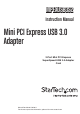 MPEXUSB3S2 Instruction Manual Mini PCI Express USB 3.0 Adapter 2-Port Mini PCI Express SuperSpeed USB 3.0 Adapter Card Manual Revision:01/10/2011 For the most up-to-date information, please visit www.startech.