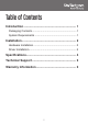 Table of Contents Introduction............................................................... 1 Packaging Contents............................................................. 1 System Requirements.......................................................... 1 Installation................................................................. 2 Hardware Installation............................................................ 2 Driver Installation..................................................................