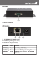 Rear Panel 1 1. RS-232 Connector LED Indicators 1 2 3 1. 10/100 Mbps LED (amber color) 2. Link/Activity LED (green color) 3. Heartbeat LED (green color) LED Name Colour Function 10/100 Mbps Green On: 100Mbps. Off: 10Mbps. Link/Activity Green On: Linked. Blinking: Transfering Data. Heartbeat Amber Blinking: Normal Operation. Not Blinking: Malfunction.