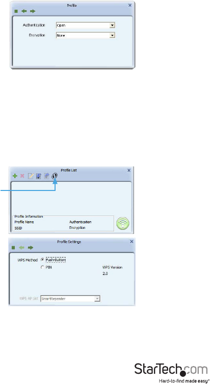 4. Select the type of Authentication/Encryption used by the network (if any). Click the