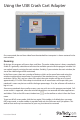 Installation Driver Installation Windows 2000/XP/ Vista Before installing the software on Windows, please disconnect the USB Crash Cart Adapter and cancel any dialog windows regarding “Add new hardware”. These windows can interfere with the installation process. 1. Insert the provided CD or USB flash drive and run the setup.exe installation program. 2. Proceed through the installation prompts, until complete. 3. Once complete, the software and drivers will have been installed on the system. 4.