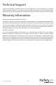 Technical Support StarTech.com’s lifetime technical support is an integral part of our commitment to provide industry-leading solutions. If you ever need help with your product, visit www.startech.com/ support and access our comprehensive selection of online tools, documentation, and downloads. Warranty Information This product is backed by a lifetime warranty. In addition, StarTech.