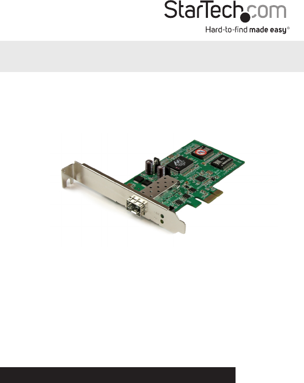 PCI Express Gigabit Ethernet Fiber Network Card with Open SFP Slot PEX1000SFP2 *actual product may vary from photos DE: Bedienungsanleitung - de.startech.com FR: Guide de l'utilisateur - fr.startech.com ES: Guía del usuario - es.startech.com IT: Guida per l'uso - it.startech.com NL: Gebruiksaanwijzing - nl.startech.com PT: Guia do usuário - pt.startech.com For the most up-to-date information, please visit: www.startech.