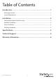 Technical Support StarTech.com’s lifetime technical support is an integral part of our commitment to provide industry-leading solutions. If you ever need help with your product, visit www.startech.com/support and access our comprehensive selection of online tools, documentation, and downloads. For the latest drivers/software, please visit www.startech.com/downloads Warranty Information This product is backed by a lifetime warranty. In addition, StarTech.