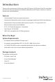 Technical Support StarTech.com’s lifetime technical support is an integral part of our commit-ment to provide industry-leading solutions. If you ever need help with your product, visit www.startech.com/ support and access our comprehensive selection of online tools, documentation, and downloads. Warranty Information This product is backed by a lifetime warranty. In addition, StarTech.