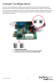 Hardware Installation 1. Turn off the power to your computer. 2. Unplug the power cord and remove your computer’s cover. 3. Remove the slot bracket from an available PCIe slot. 4. To install the card, carefully align the card’s bus connector with the selected PCIe slot on the motherboard. Push the board down firmly. 5. Optional: Connect the LP4 molex power connector from the computer power supply to the card. Make sure the Jumper settings on the card are configured properly. 6.