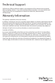 Technical Support StarTech.com’s lifetime technical support is an integral part of our commit-ment to provide industry-leading solutions. If you ever need help with your product, visit www.startech.com/ support and access our comprehensive selection of online tools, documentation, and downloads. Warranty Information This product is backed by a one year warranty. In addition, StarTech.