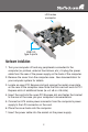LP4 molex connector USB 3.0 type A ports Hardware Installation 1. Turn your computer off and any peripherals connected to the computer (ie. printers, external hard drives, etc.). Unplug the power cable from the rear of the power supply on the back of the computer. 2. Remove the cover from the computer case. See documentation for your computer system for details. 3. Locate an open PCI Express slot and remove the metal cover plate on the rear of the computer case.