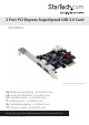 2 Port PCI Express SuperSpeed USB 3.0 Card PEXUSB3S2 *actual product may vary from photos DE: Bedienungsanleitung - de.startech.com FR: Guide de l'utilisateur - fr.startech.com ES: Guía del usuario - es.startech.com IT: Guida per l'uso - it.startech.com NL: Gebruiksaanwijzing - nl.startech.com PT: Guia do usuário - pt.startech.com For the most up-to-date information, please visit: www.startech.