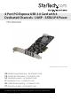 4 Port PCI Express USB 3.0 Card with 4 Dedicated Channels - UASP - SATA/LP4 Power PEXUSB3S44V *actual product may vary from photos DE: Bedienungsanleitung - de.startech.com FR: Guide de l'utilisateur - fr.startech.com ES: Guía del usuario - es.startech.com IT: Guida per l'uso - it.startech.com NL: Gebruiksaanwijzing - nl.startech.com PT: Guia do usuário - pt.startech.com For the most up-to-date information, please visit: www.startech.