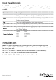 Technical Support StarTech.com’s lifetime technical support is an integral part of our commitment to provide industry-leading solutions. If you ever need help with your product, visit www.startech.com/support and access our comprehensive selection of online tools, documentation, and downloads. For the latest drivers/software, please visit www.startech.com/downloads Warranty Information This product is backed by a two year warranty. In addition, StarTech.