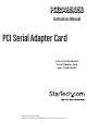 PCI2S4851050 Instruction Manual PCI Serial Adapter Card 2-Port PCI RS-485/422 Serial Adapter Card with 161050 UART Manual Revision:07/18/2011 For the most up-to-date information, please visit www.startech.