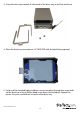 3. Grasp the drive tray handels to slide each of the drive trays out of the enclosure 4. Place the drive tray arround your 2.5” HDD/SSD with the label facing upward. 5. Fix four of the included hdd installation screws into place through the screw holes on the drive tray using a Phillips head screw driver (not included). Repeat this process for your second drive using the other drive tray.