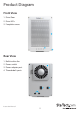 Product Diagram Front View 1. Drive Door 2. Drive LEDs 3. Faceplate screws 1 2 3 Rear View 1. Built-in drive fan 2. Power switch 1 3. Power adapter port 4.