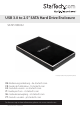 USB 3.0 to 2.5” SATA Hard Drive Enclosure SAT2510BU32 *actual product may vary from photos DE: Bedienungsanleitung - de.startech.com FR: Guide de l'utilisateur - fr.startech.com ES: Guía del usuario - es.startech.com IT: Guida per l'uso - it.startech.com NL: Gebruiksaanwijzing - nl.startech.com PT: Guia do usuário - pt.startech.com For the most up-to-date information, please visit: www.startech.