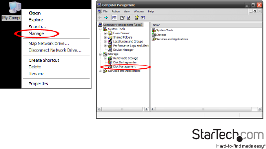 desktop, right-click on “My Computer” (“Computer” in Vista/7), then select Manage.
