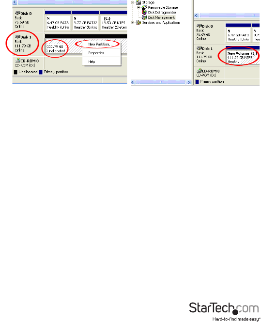 Locate the Disk that says it is “Unallocated” (check hard drive capacity to conrm it’s the