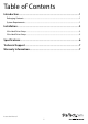 Technical Support StarTech.com’s lifetime technical support is an integral part of our commitment to provide industry-leading solutions. If you ever need help with your product, visit www.startech.com/support and access our comprehensive selection of online tools, documentation, and downloads. For the latest drivers/software, please visit www.startech.com/downloads Warranty Information This product is backed by a two year warranty. In addition, StarTech.