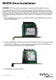 MSATA Drive Installation WARNING! SSD Drives and storage adapters require careful handling. If you are not careful with your SSD Drive, lost data may result. Always handle your drive with caution. Be sure that you are properly grounded by wearing an anti-static strap when handling computer components or discharge yourself of any static electricity build-up by touching a large grounded metal surface (such as the computer case) for several seconds. 1.