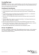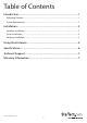 Technical Support StarTech.com’s lifetime technical support is an integral part of our commitment to provide industry-leading solutions. If you ever need help with your product, visit www.startech.com/support and access our comprehensive selection of online tools, documentation, and downloads. For the latest drivers/software, please visit www.startech.com/downloads Warranty Information This product is backed by a two year warranty. In addition, StarTech.