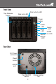 Front View Disk Activity LED Tray Release button Disk Link LED Power button Power LED Error LED Ready LED eSATA eSATA Link LED Activity LED Rear View DC Power connector Reset button eSATA port Fan ON/OFF switch 2 80mm cooling fan