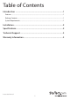 Technical Support StarTech.com’s lifetime technical support is an integral part of our commitment to provide industry-leading solutions. If you ever need help with your product, visit www.startech.com/support and access our comprehensive selection of online tools, documentation, and downloads. For the latest drivers/software, please visit www.startech.com/downloads Warranty Information This product is backed by a two year warranty. In addition, StarTech.