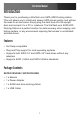Instruction Manual Specifications Internal Connectors External Connectors Drive Compatibility SATDOCKU2GB SATDOCKU2EGB SATDOCK2UEGB SATDOCKU2EU SATDOCKU2EEU SATDOCK2UEEU • 1 x SATA Power 15-Pin Female • 1 x SATA Data 7-Pin Female • 1 x USB B Female • 1 x DC Power Adapter • 2 x SATA Power 15-Pin Female • 2 x SATA Data 7-Pin Female • 1 x USB B Female • 1 x USB B Female • 1 x eSATA Plug Female • 2 x eSATA Plug Female • 1 x DC Power Adapter • 1 x DC Power Adapter 2.5/3.5” SATA 1.