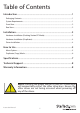 Technical Support StarTech.com’s lifetime technical support is an integral part of our commitment to provide industry-leading solutions. If you ever need help with your product, visit www.startech.com/support and access our comprehensive selection of online tools, documentation, and downloads. For the latest drivers/software, please visit www.startech.com/downloads Warranty Information This product is backed by a two year warranty. In addition, StarTech.
