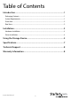 Technical Support StarTech.com’s lifetime technical support is an integral part of our commitment to provide industry-leading solutions. If you ever need help with your product, visit www.startech.com/support and access our comprehensive selection of online tools, documentation, and downloads. Warranty Information This product is backed by a two year warranty. In addition, StarTech.