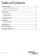 Technical Support StarTech.com’s lifetime technical support is an integral part of our commitment to provide industry-leading solutions. If you ever need help with your product, visit www.startech.com/support and access our comprehensive selection of online tools, documentation, and downloads. For the latest drivers/software, please visit www.startech.com/downloads Warranty Information This product is backed by a two year warranty. In addition, StarTech.