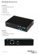 Product Diagram ST424HDBT Matrix Transmitter Front View 1. Output 1 select button w/ LED indicator 2. Output 2 select button w/ LED indicator 3. Output 3 select button w/ LED indicator 4. Output 4 select button w/ LED indicator 5. IR sensor 6. Power switch Back View 1. Serial port 8. Cat5/local HDMI output ports 2 2. LAN port 9. HDMI input port 1 3. EDID switch 10. HDMI input port 2 4. Power Jack 11. HDMI input port 3 5. IR extender ports (1 through 4) 12. HDMI input port 4 6.